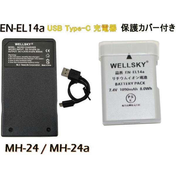 EN-EL14a EN-EL14 互換バッテリー 1個 & MH-24 MH-24a 超軽量 USB Type C 急速 互換充電器 バッテリーチャージャー 1個 NIKON ニコン