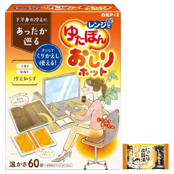 レンジでゆたぽん おしりホット 洗えるカバー付き ぽかぽか快適睡眠 くりかえし使える 保温 ポータブル暖房 入浴剤1個付き