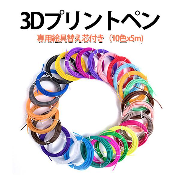 3dプリンター PCLフィラメントリフィル 3dペン 専用絵具替え芯付き(10色x5m) 知育 玩具 USB充電 2速調整可能 お絵かき 女の子 男の子