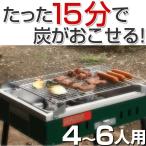 ■面倒な炭おこしが誰でも簡単に15分でできるバーベキューコンロです。 ■付属の着火燃料、火起し器を使用することで、簡単に火をおこすことができます。 ■4〜6人用サイズで家族で楽しむのに最適です。 ■スタンドアーム付きで、網の位置を変えることができ、火力が強すぎる場合などに便利です。 サイズ/組み立て時:約幅50×奥行35.6×高さ70cm焼き網:約縦30×横45cm重量/約5.2kg(火起こし器含)内容量/本体、焼き網:各1個足:4本火起し器:1個着火用パック燃料:4個材質/スチール、他生産国/中国製備考/付属品:着火用パック燃料4個※炭は付属しません[在庫商品][返品区分A]《バーベキューグリル BBQ コンロ キャンプ用品 アウトドア用品 バーベキューグッズ》