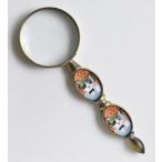 ■持ち手がネコ柄でアンティークテイストなルーペ W5×D1×H15.5cm スチール/ガラス 2.5 中国