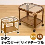 ラタンとガラスで涼しげなサイドテーブル! キャスター付きで簡単に動かせます! コンパクトサイズが可愛いラタン(籐)のサイドテーブルです。 ガラスとの組み合わせがとても涼しげで春夏にはぴったりの商品です。 キャスターが付いているのでコロコロと転がして移動も楽々! 高座椅子やソファーなどと一緒に使うとより便利ですよ。 人気 おしゃれ 収納家具! ブラウン(BR)とハニー(HN)よりお選び下さい 幅450×奥行350×高さ400mm ガラスサイズ:幅400×高さ300mm 天板厚:約5mm 耐荷重:天板約3kg棚板約2kg 本体重量:2.6kg キャスターのみ取り付け(約5分)1梱包 天然籐(ラッカー塗装) 強化ガラス キャスター4個(ストッパー無) ※写真のチェアは別売りです!! 沖縄県への発送は出来ません。