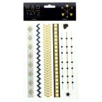 QC-T095 BANDS フリー RAD TATZ(ラッドタッズ)Metallic Tatoos メタリックタトゥーは、ロサンゼルス発祥のライフスタイルアクセサリーブランドです。 ラッドタッズ・メタリックタトゥーは金箔や銀箔のジュエリーを身に着けたような輝きがあるタトゥーシールです。 タウンユース・ビーチ・フェス・パーティー・仮装イベントなど、オールシーズンで幅広くご活用していただけるアイテムです。 金属アレルギーをお持ちの方、うたがいのある方は、ジュエリー商品の購入・着用前に医療機関の検査や診察を受け、専門医のアドバイスに従うことを推奨します。