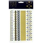 QC-T098 AZTEC フリー RAD TATZ(ラッドタッズ)Metallic Tatoos メタリックタトゥーは、ロサンゼルス発祥のライフスタイルアクセサリーブランドです。 ラッドタッズ・メタリックタトゥーは金箔や銀箔のジュエリーを身に着けたような輝きがあるタトゥーシールです。 タウンユース・ビーチ・フェス・パーティー・仮装イベントなど、オールシーズンで幅広くご活用していただけるアイテムです。 金属アレルギーをお持ちの方、うたがいのある方は、ジュエリー商品の購入・着用前に医療機関の検査や診察を受け、専門医のアドバイスに従うことを推奨します。