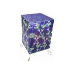 サイズ 縦11cm、横11cm、高さ19cm 材質 シェード:コットン脚:メタルワイヤー 本場インド直送!蒼をベースにきれいな緑の葉を刺繍しました。 リラックスしながら淡い光をお楽しみください。 ※コード150cm(中間ロータリースイッチを含む)、E12口金ソケット電球10W付。