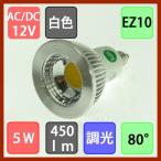 12Vハロゲンビーム40W-65Wをそのまま取替えて点灯します。 口金:EZ10 <br>調光対応 溝の深いアルミヒートシンクで放熱に優れています。 認証:CEROHS 保証:出荷から1年間 サイズ:50φX70mm 電圧AC/DC12V 消費電力:5W 照射角度:80度 発色:電球色2700k 全光束:430lm ランプ寿命:50000時間 本体材質:アルミニウム/PCカバー 防水タイプではありません。 調光機能のついた一部の器具や回路では、使用できないことがあります。 誘導灯、非常照明では使用できません。 水滴のかかる場所では、使用できません。 直流電源では、使用できません。 電球の取替、清掃の時は必ず電源を切って下さい。 ランプ周囲温度は、-5℃〜40℃の範囲で使用して下さい。 密閉型器具や密閉に近い状態の器具では使用しないで下さい。 LED素子には光色、明るさにばらつきがあるため、同じ商品でも明るさが異なることがあります。 ランプ寿命は、設計寿命であり、製品の寿命を保証するものではありません。 光束の70%までダウンするのを寿命としています。