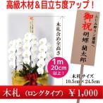 本物の木材を使用した木札ロングは高級感プラス目立ち度が違います。 お花プラスアルファで2ランク以上の見栄えになります。