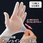 ゴム手袋を付けた時のムレる、付けにくい、外しにくい!そんな不快感を軽減。 ゴム手袋の中にはめて使用するインナー手袋です。 メッシュ構造だから、ゴム手袋特有のムレやべたつきを抑え、脱着もスムーズ!指先カットOKで、指先の感覚が必要な作業にも。 ※指先をカットした後、無理に引っ張るとほつれる可能性があります。 また、薄いゴム手袋をつけるとカット部分がまくれる可能性があります。 内容量:10枚 適応サイズ:手囲い約17〜22cm(S〜L) 素材:ナイロン、ポリウレタン ※お届けには1週間程度かかります。