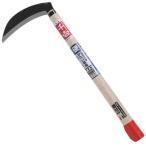 草刈り鎌。 除草作業用です。 硬い草の草刈り用。 鋼付刃で切れ味抜群。 ■刃部:鋼付。 ■刃部:両刃。 ■刃部:安来鋼白紙2号。 ■柄部:木。 幅180×高さ420×奥行25mm重量200g ■本来の用途以外には使用しないで下さい。 使用前には本体あるいは部品にがたつき・緩みが無いことを確認してください。 ■使用の際には保護めがね・手袋などを着用してください。 使用後は汚れを取り、子供の手の届かない安全な場所に保管してください。