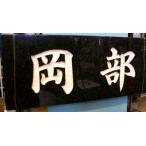 福彫の表札です。 天然石の黒ミカゲ(白文字) ※表札のサンプルで当店に展示してありました商品となります。 様限定1枚のみ ※サイズ:198WX83HX20T(mm)約1kg ※書体(行書) ※展示品の為、傷などがある場合もございますがご了承ください。