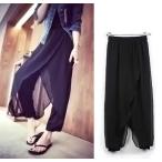 1250円が10%OFFで1125円のお得な価格に♪ 夏物の着物にも使われる薄手で透け感のある素材「紗」を使ったオリエンタルパンツ♪ ウエストゴムなので楽に着用ができます。