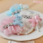 WOOFLINK 2015 COLLECTION 2 メッシュのリボンにクリスタル、パール、ティディーベアで装飾されたラブリーなヘアバレッタです。 ブルー・ピンク・ホワイト 約 5cm x 4cm 〇当商品は2週間前後でお届け致します。