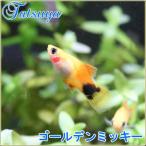 プラティの品種改良種で、尾の付け根にある黒い模様が、 ミッキーマウスの顔がシルエットに見えるので、 ミッキーマウスプラティと呼ばれています。 本種は体色がゴールドのミッキーマウスプラティです。 とても綺麗な見た目からプラティの中でも人気の種です。 飼育は原種と同様に容易で、初心者でも飼い易い種です。 最大全長:オス4cmメス6cm 温度:21〜27度 |