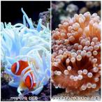 触手には毒があり素手で触れると種類や体質によっては皮膚がかぶれることがありますので手袋などをして扱うことをお勧めします。 落ち着ける場所を探して頻繁に動き回る性質を持っているため、ストレーナーやオーバーフローパイプに吸い込まれ死んでしまう事故が起きる可能性があるのでスポンジや目の細かいネットで覆うなどの工夫が必要です。 また、個体差・状態により触手の色・形が掲載写真と異なる場合がありますので予めご了承ください。 ハマクマノミ(2匹)+タマイタダキイソギンチャクS−M(1匹)のセットです。 ハマクマノミAmphiprionfrenatus(※)…改 … ....... |