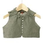 昭和の時代に販売していた商品です。 日本製 チャイルド ノースリーブのブラウスです。 前身頃ボタンで開閉できます。 後背中部分に刺繍が有ります。 サイズ:24か月(90cm)丈37cm胸幅29cm 品質表示:ポリエステル65%綿35% 状態:目立った汚れは有りません。 昭和の時代に販売していた商品です。 現在は製造しておりません。 ビンテージ品につき新品を求める方、また神経質な方はご遠慮下さい。 返品・交換は出来ませんのでご了承願います。