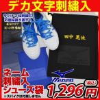 ミズノのシューズ袋が刺繍料金も入ってこの価格! 書体・カラーが選べて、卒団・卒業の記念品としても喜ばれること間違いなし! ■素材:ポリエステル ■袋のサイズ:約幅30×高さ40cm ■カラー;ブラック、ネイビー、ブルー ※刺繍可能文字数であっても、ご希望の漢字や書体によってはお受けできない場合もございます。 ※一部の旧字などフォントとして用意ができない漢字はお受けできません。 ※ご注文後確定後のキャンセル不可 刺繍の文字はお手数ですが、注文フォームの備考欄にお書きください。 1段の例)一球入魂 2段の例) 1段目:全力投球2段目:野球次郎 ※3段は+540円(税込)の追加料金が発生します ※金額はご注文確定後、当店にて追加をさせていただきます |