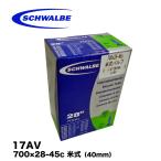 シュワルベ チューブ 17AV 700×28-45c 米式(40mm) 幅広いサイズレンジと豊富なラインナップであらゆるタイヤサイズに対応します。 また、英米仏式すべてバルブコアを取り外せるようになっており、シーラントやパンク防止剤の注入も容易です(15SV-ML除く)。 ■対応サイズ : 700×28-45c ■バルブ形式 : 米式 ■バルブ長 : 40mm ■素材 : ブチルゴム ■1本入り |