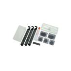 ○ロード用パンク修理キット レバー付 内容物:薄型パッチ5枚、ゴムのり1本、サンドペーパー1枚、タイヤレバー3本、専用ケース・収納袋付 収納袋(ビニール)には専用ケースとタイヤレバーが収納できます。 従来のパッチより薄いので、貼り付けた部分の違和感が少なく快適な乗り心地です。 専用ケースに入っていますので、サドルバックなどに簡単に収納できます。