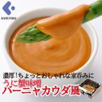 普通のバーニャカウダと比べると、とろりとしていて 具材にしっかり絡み付くソースになっています。 うにの味と香りに、蟹味噌の風味と旨味が濃厚! そこに、アンチョビ・にんにく・オリーブオイルを加え、 洋食でもぴったり合うバーニャカウダ風に仕上げました。 温めずにそのままで、スティック野菜などにつけてお召し上がり頂けます。 生野菜は勿論、グリル野菜や揚げ物、茹でた海老やイカ等の海鮮にもマッチ。 クラッカーに小さく切ったチーズを乗せて、 バーニャカウダ風を少し垂らして食べても美味しいです! 野菜と一緒に食べられて美味しい、ヘルシーなおつまみになりますよ。 少しずつお使い頂ける、小分けの6個入りパックです! パーティや、洋風のご馳走を更に盛り上げる一品。 チーズフォンデュの横に、味変として付けてみても....... |