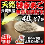 安心♪安全♪手軽に♪本物の”あごだし”がとれる<br>この無添加 焼あごは、品質の良いトビウオを原料にして炭火でじっくりと芯まで焼いています。 <br>上品でありながら力強いあごだしは日本料理店だけでなく、多くのお店で使われています。 <br>その高級だしを使いやすく、細かな粉末状にしました。 <br>ぜひ、ご自宅でお試しください。 カレーのルーなどに入れると、味に深みが出ます。 <br>(送料0円です。 但し、通常商品との同梱の場合には、追加料金が必要です。 当店からのご注文確認メールで訂正させて頂きますのでご了承下さい。 )<br>約1ミリ前後の粉末ですが、"あごの煮干し"の粉末ですので、水には溶けません。 舌触りが気になられる際は、市販のお茶のパック(袋)をご利用ください。