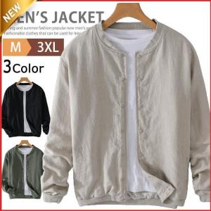 リネンジャケット麻ジャケットメンズ春夏用無地麻ブルゾンメンズ薄手綿麻リネンシャツジャケットメンズ春夏コーチジャケット夏はおりメンズフ