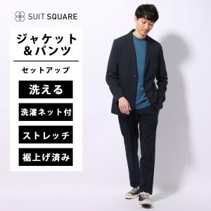 【洋服の青山】ゼロプレッシャースーツジャケットセットアップスーツメンズ男性紳士服春夏ネイビーウォッシャブル洗えるストレッチ撥水UVカット