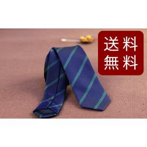 ナロータイネクタイネイビーグリーンストライプ細ネクタイ