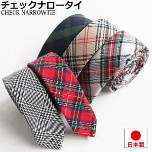 チェック柄ネクタイ日本製3.5cm幅細めナロータイタータンチェック紳士メンズカジュアルユニフォームスリムタイアメカジ