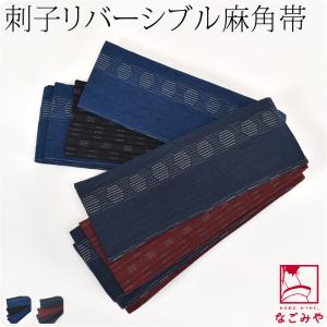 男物角帯日本製本麻刺子リバーシブル角帯406cm全2色男帯かくおび手結び着物袴下浴衣帯だけ大人メンズ男性