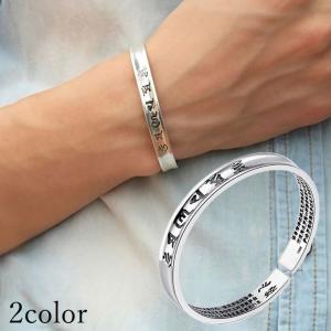 バングルブレスレットメタルレディースアクセサリー腕輪刻印お守り魔除け仏教梵字般若心経お経サンスクリットシルバーカラー個性