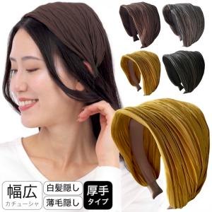カチューシャ幅広厚手プリーツ黒ブラック白髪隠し太めワイドヘアアクセサリー