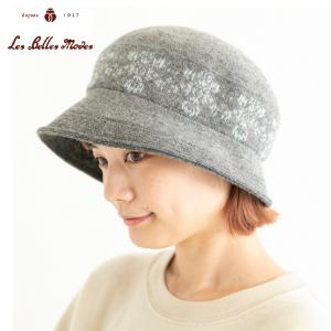 ハットウール日本製レディース帽子秋冬(グレー/チャコールネイビー/ベージュ/バーガンディー)07-669北欧モザイク柄のふんわりクローシュベルモード