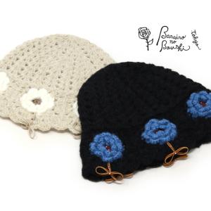 ニットハットクロシェハット帽子レディースアクリル秋冬バラ色の帽子ハナハナニットキャップBaraironoboushi日本製
