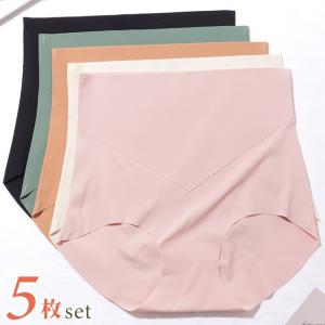 【5枚セット】ソリッドカラーハイウエストシームレスVステッチショーツ女性レディース肌着下着パンツ春夏秋冬通気性