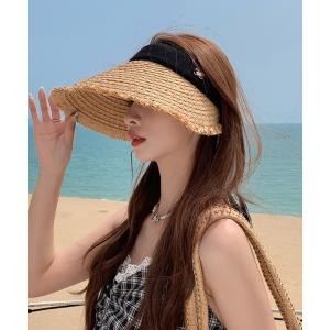 サンバイザーストラップ付きソリッドカラーつば広パッカブルサンバイザーレディース