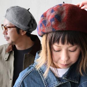 ベレー帽帽子ベレー帽幾何学柄ウールフェルト暖かい軽いチョボ付きカジュアル秋冬メンズレディースパティ