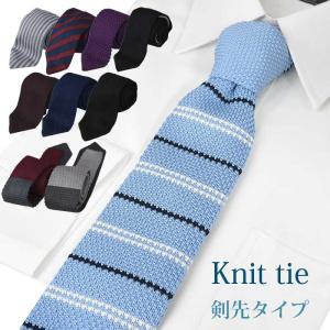 ニットタイネクタイ剣先おしゃれ無地パネルボーダープレゼント誕生日クリスマスバレンタイン父の日
