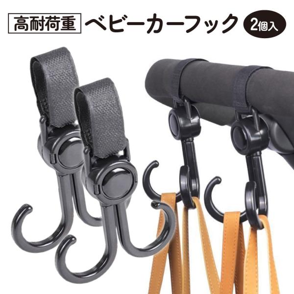 ベビーカー フック 回転 バギーフック 荷物 ベビーカー グッズ 360度 ママバッグ 自転車 車 子供 買い物カゴ ペット カート 車椅子 キャンプ フック 取り付け