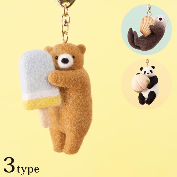 ハマナカ フェルト羊毛でつくるどうぶつとおやつマスコット くま ラッコ パンダ | フェルト羊毛キット 羊毛フェルト キーホルダー マスコット 動物 どうぶつ